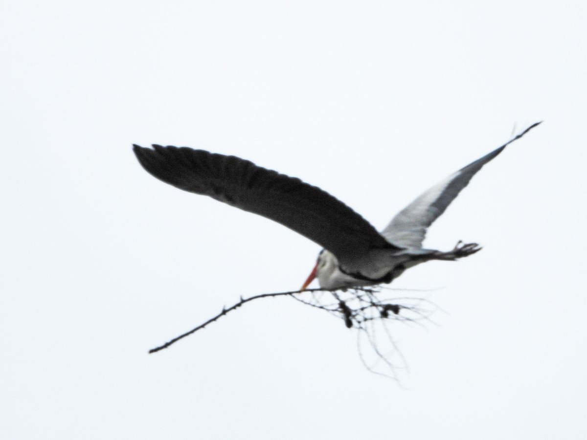 巣作り用の小枝を運んでいるアオサギもいました。(写真6)