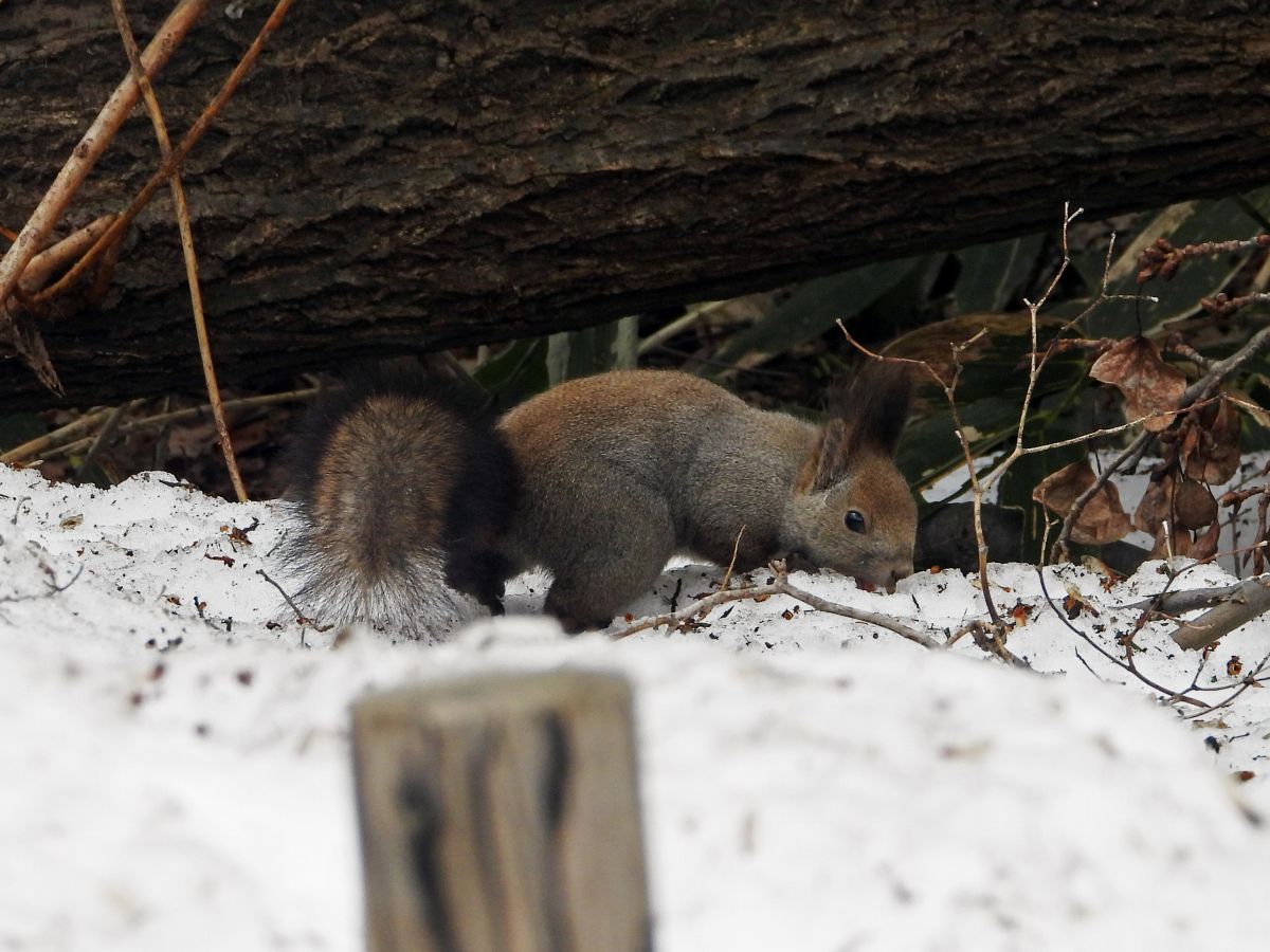 始めて見たときは走っていたのですが、すぐに大きな切り株に上って食事をはじめました。