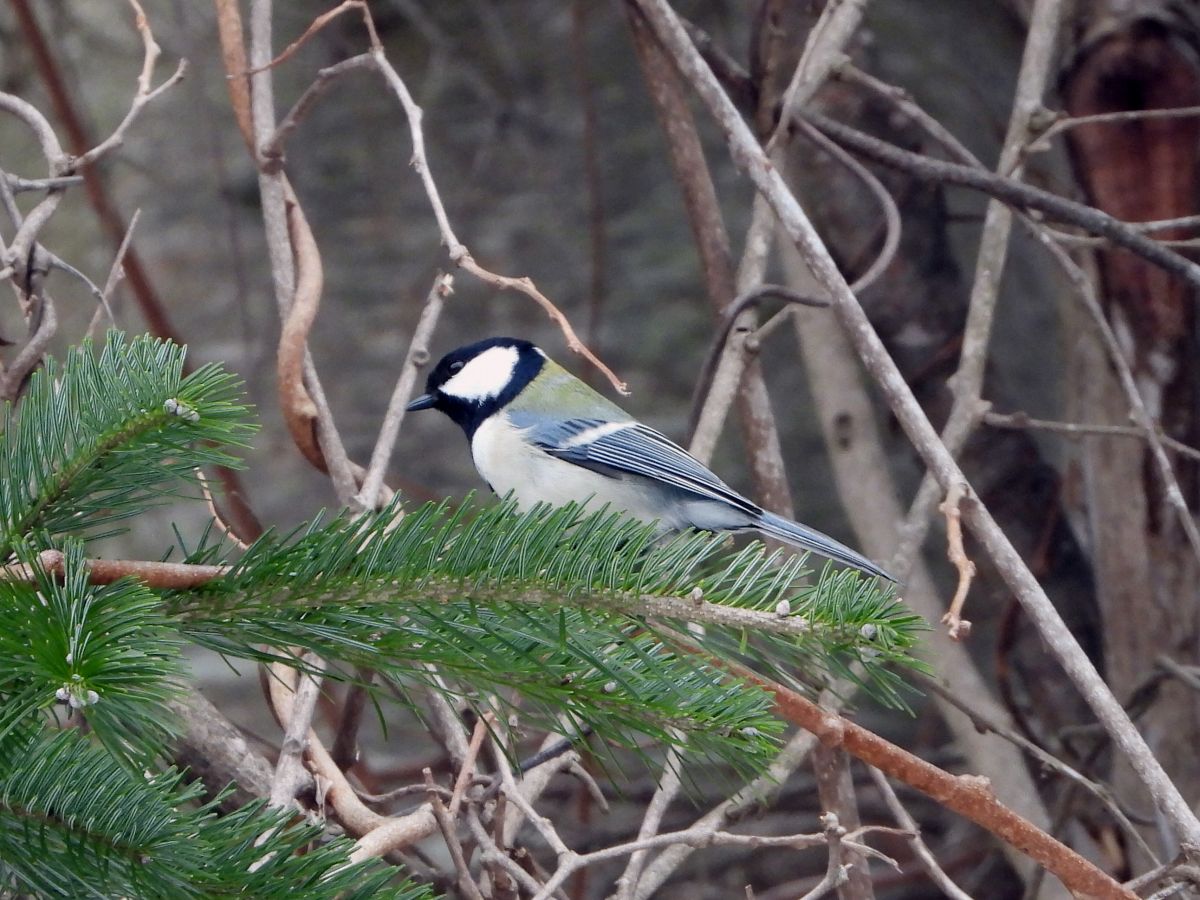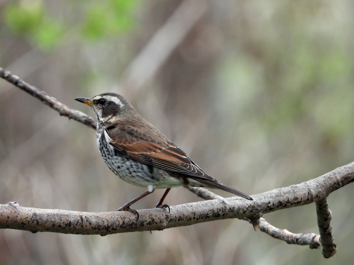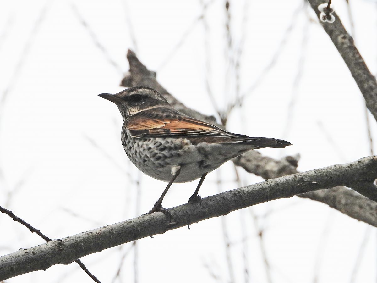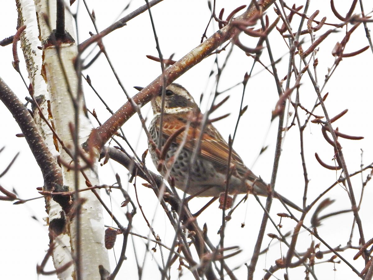 人工池の近くで、ツグミが1羽飛んできて、私のすぐそばの木にとまりました。(写真2)