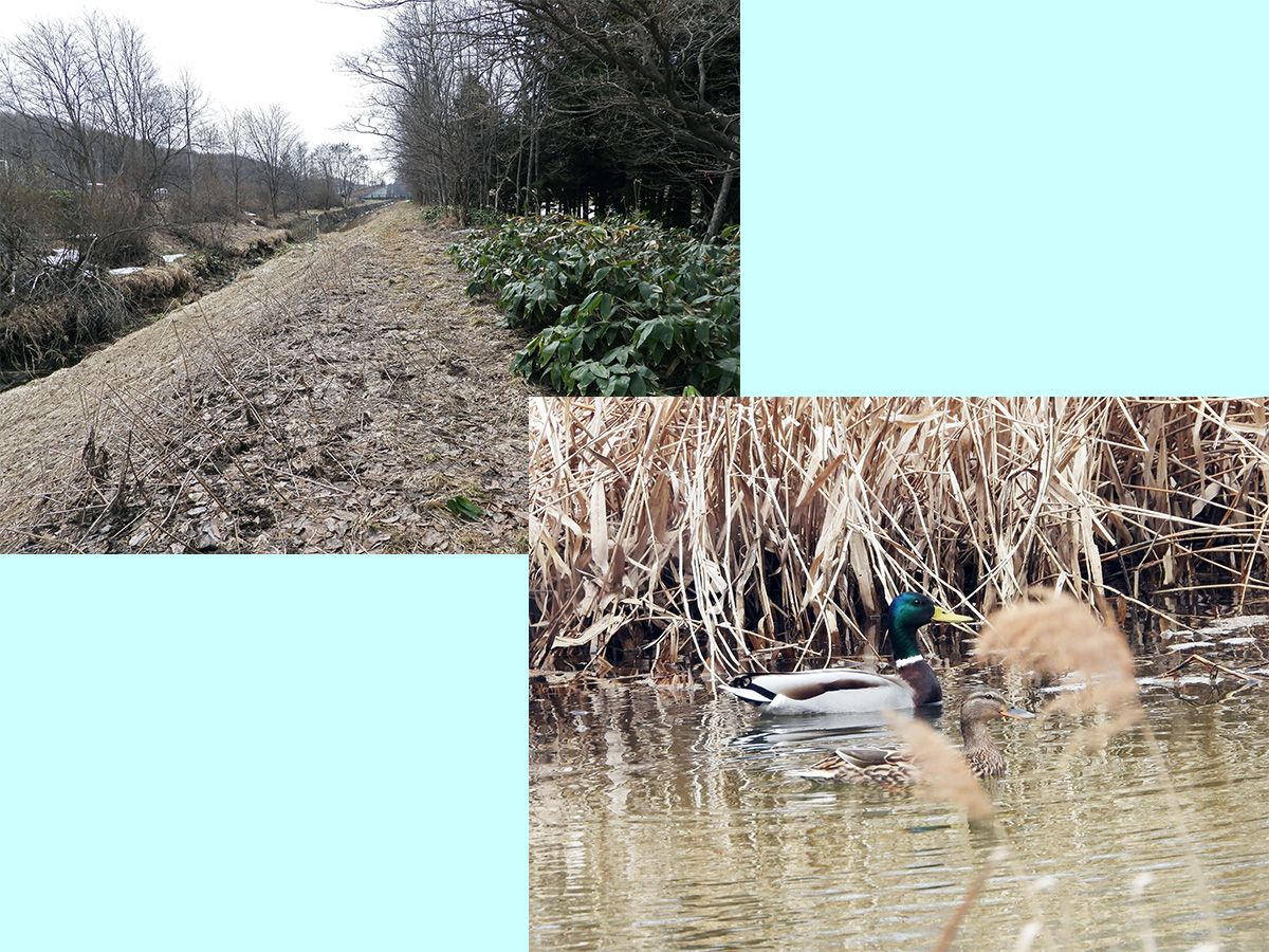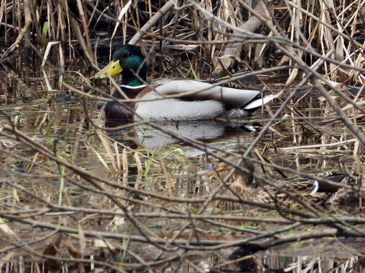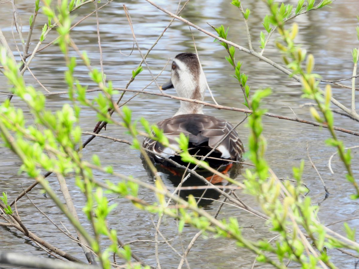 人工池を訪れるカモはマガモが圧倒的に多いのですが、たまにカルガモが姿を見せることがあります。