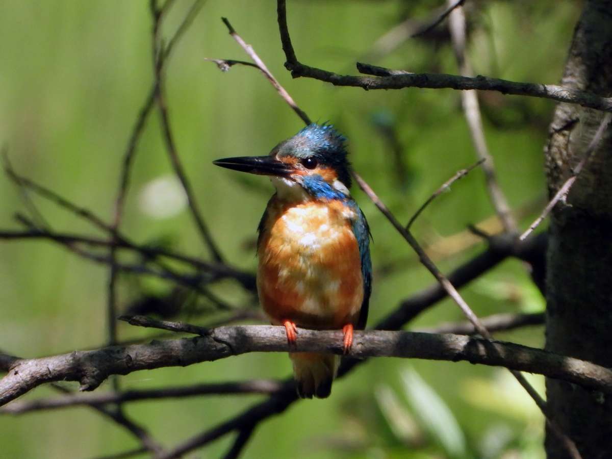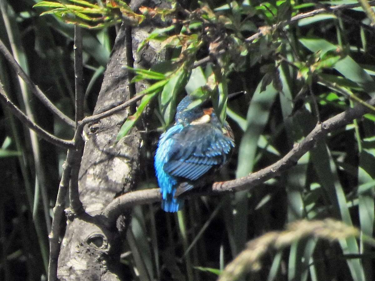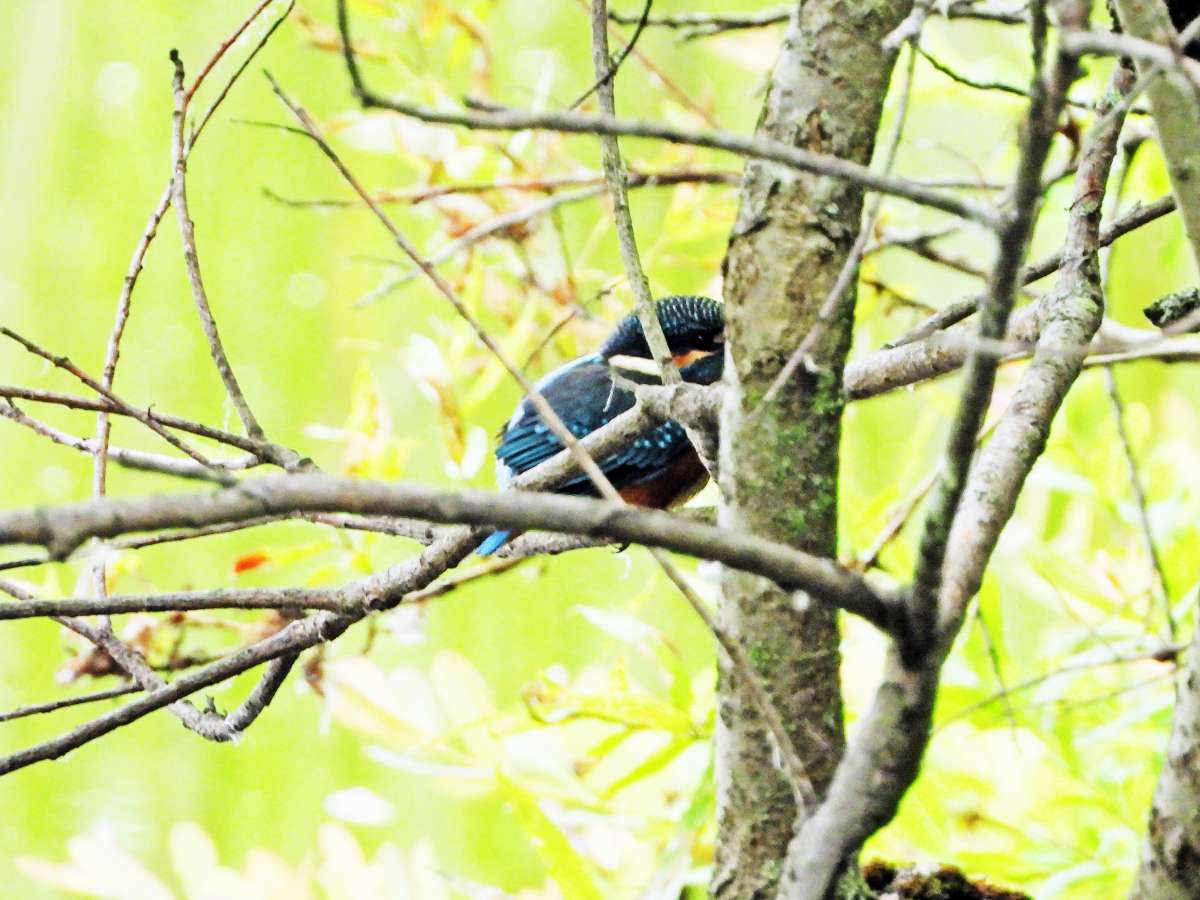はじめに人工池を訪れたときに、池の一番奥側にカワセミがとまっていました。