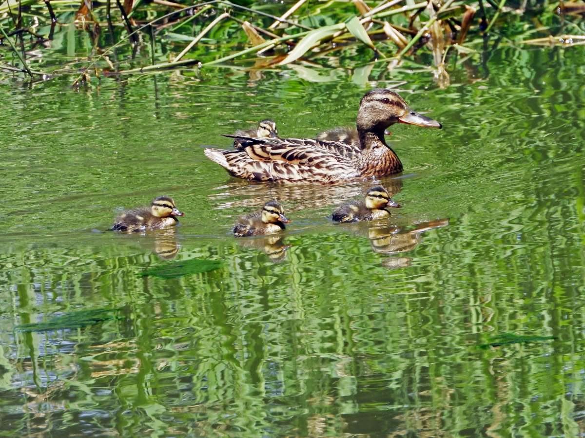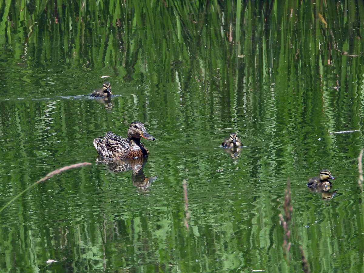 最後に見たときはヒナを5羽連れていましたが、今日は4羽まで確認できました。