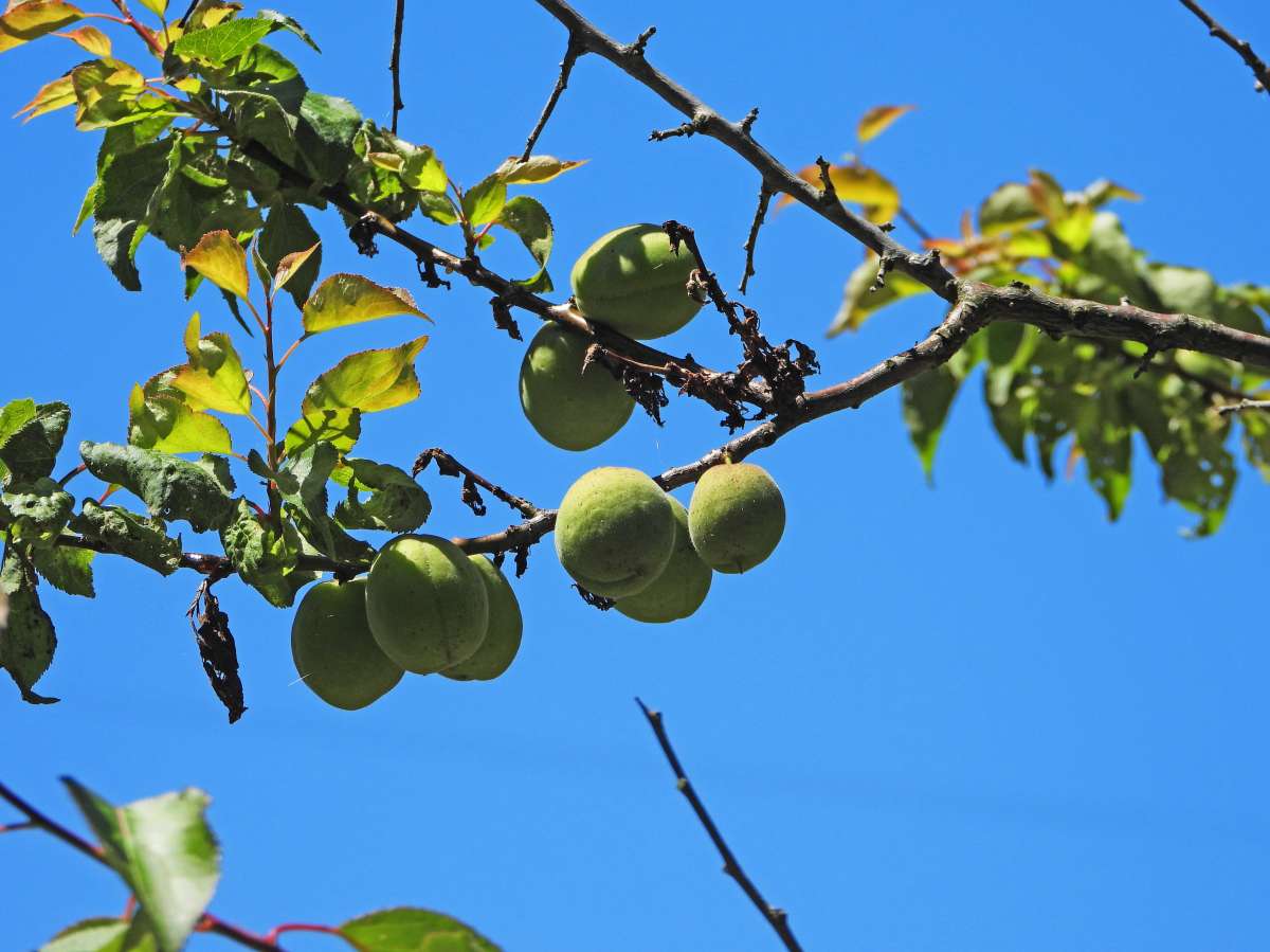 梅園の梅の果実は今年は大豊作の様子でしたが、老木が多いため木への影響を考慮してほとんどが摘果されています。
