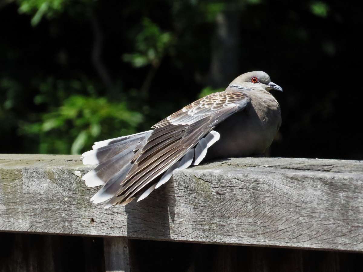 なぜか尾羽を広げて休んでいましたが、なぜそんな姿勢をしていたのかは不明です。
