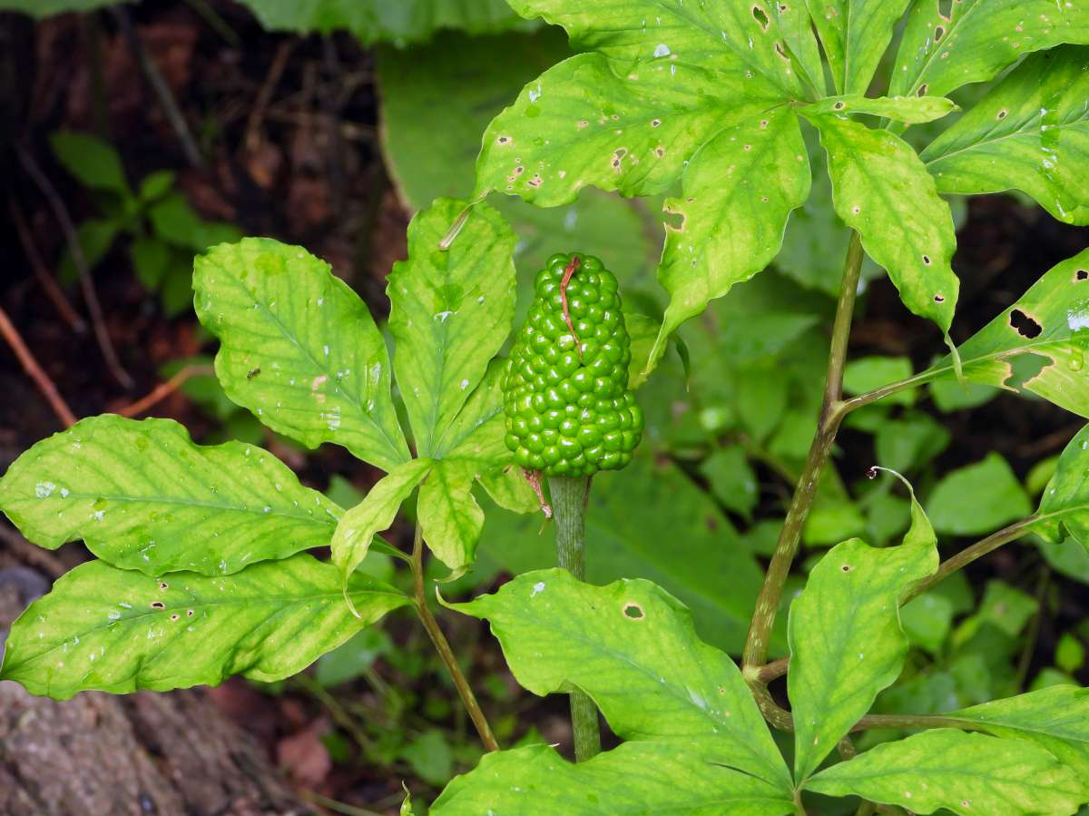 茎がマムシの模様になるのでマムシ草と呼ばれていますが、実は熟すると真っ赤になります。