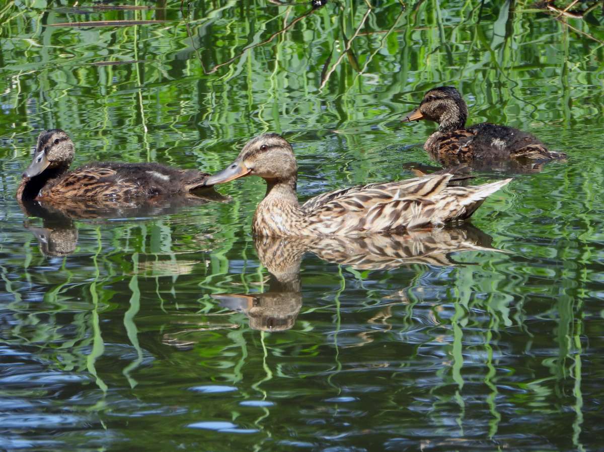 人工池でマガモの親子に再会しました。(写真1〜3)