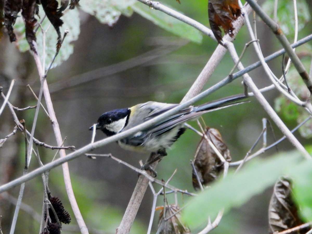 野鳥はかなり少ない状態が続いていますが、水浴び直後でみずくろい中のシジュウカラを撮影できました。(写真1)
