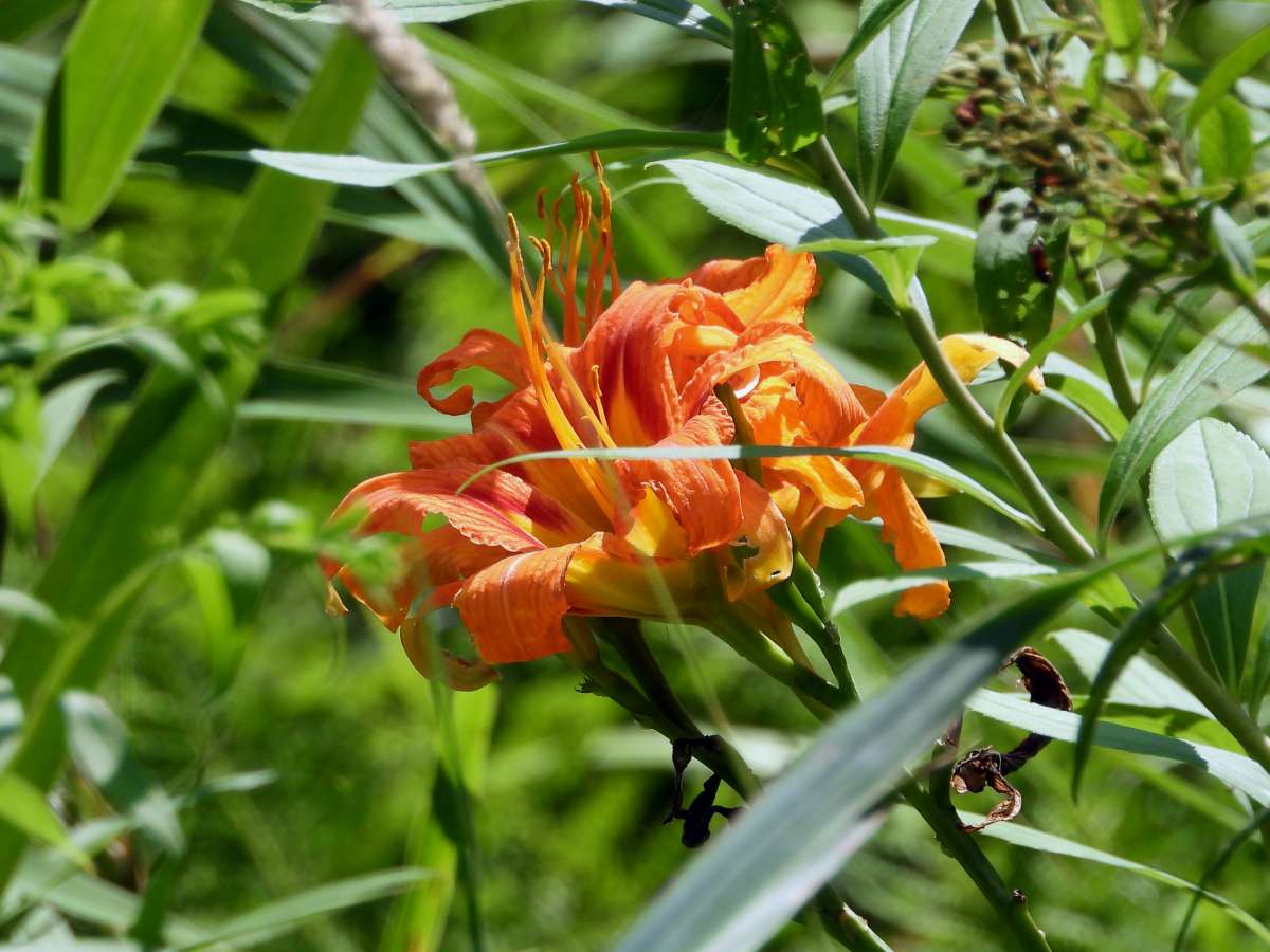 ネットで調べると、開花期間は6月〜10月、7月が最盛期で、朝に開いて午後にはしぼむ1日花とありました。