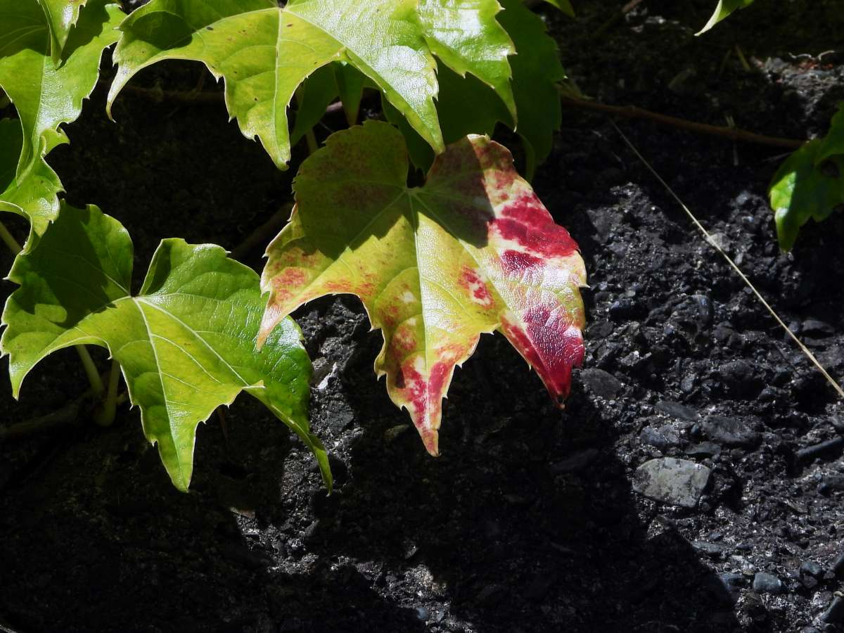 写真3は、梅園の斜面上にある紅葉の樹ですが、しばらく前に少し紅葉を始めましたが、その後はほとんど進んでいません。