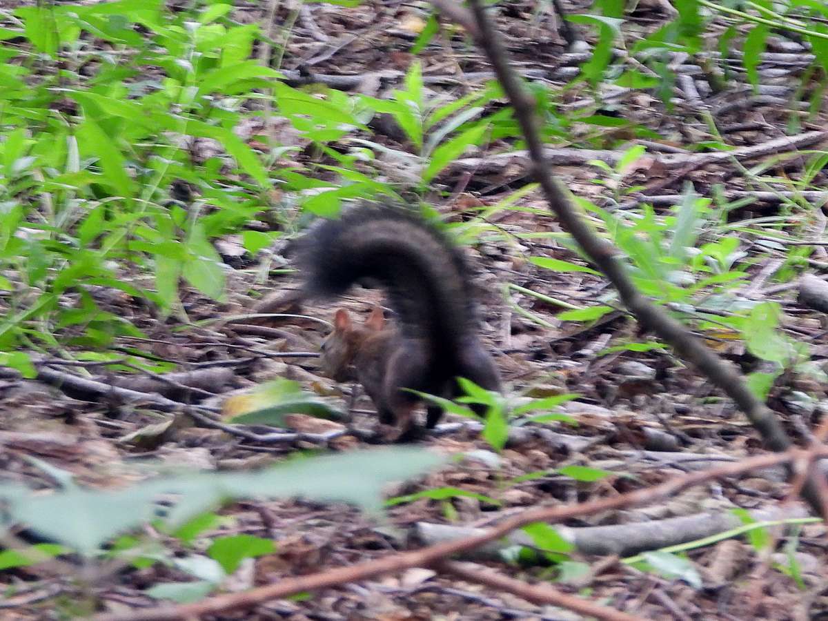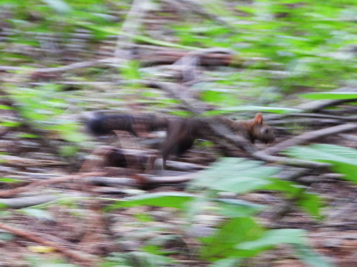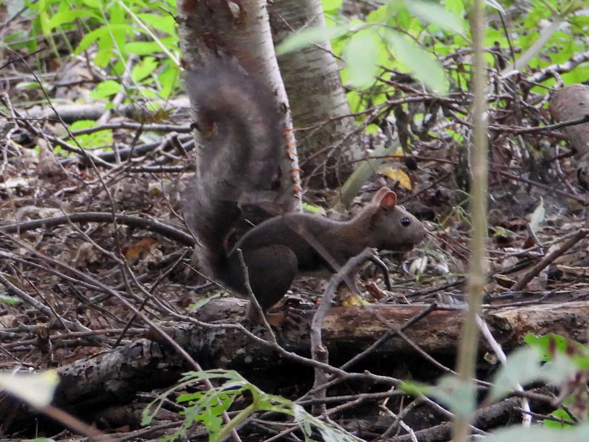 1回目に訪れたときは姿がありませんでしたが、2回目に訪れたときに子供のエゾリス2匹が採餌をしていました。