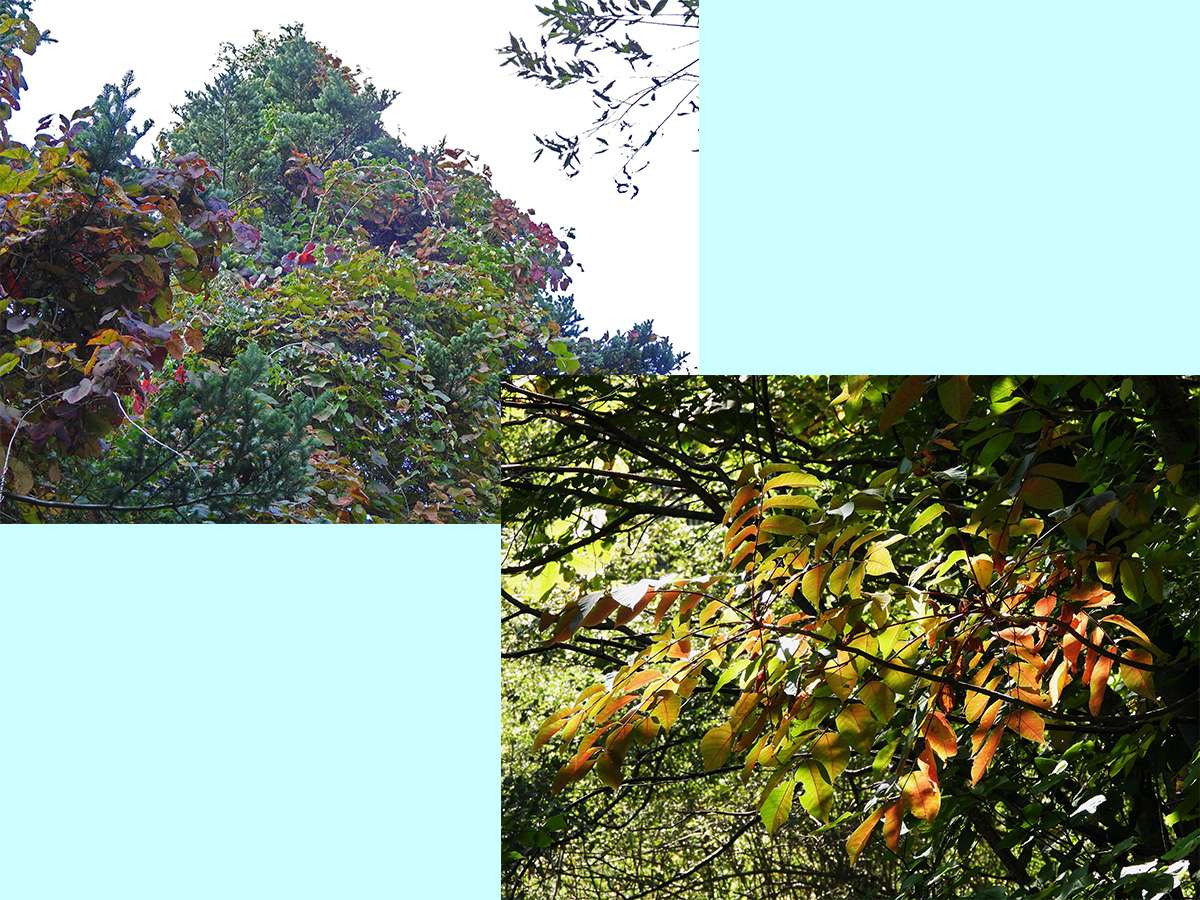 平岡公園の紅葉・黄葉は確実に進んでいますが、いち早く黄葉した木や草ではすでに枯れ始めているものもあります。