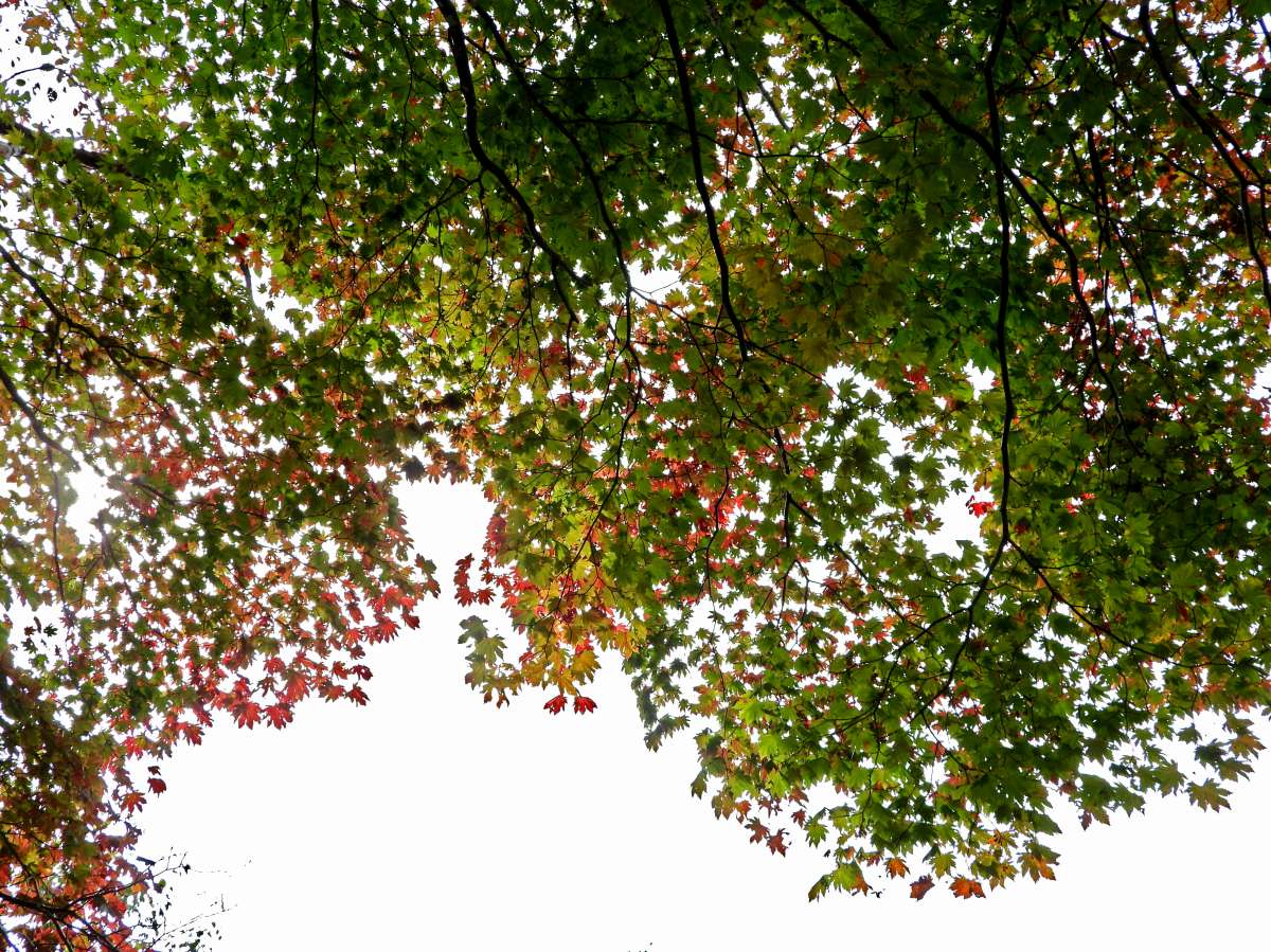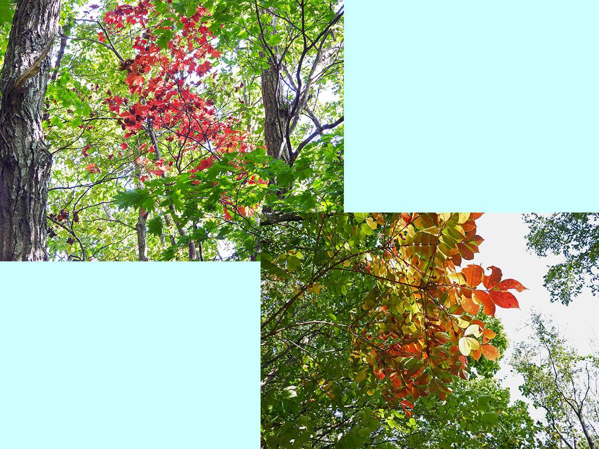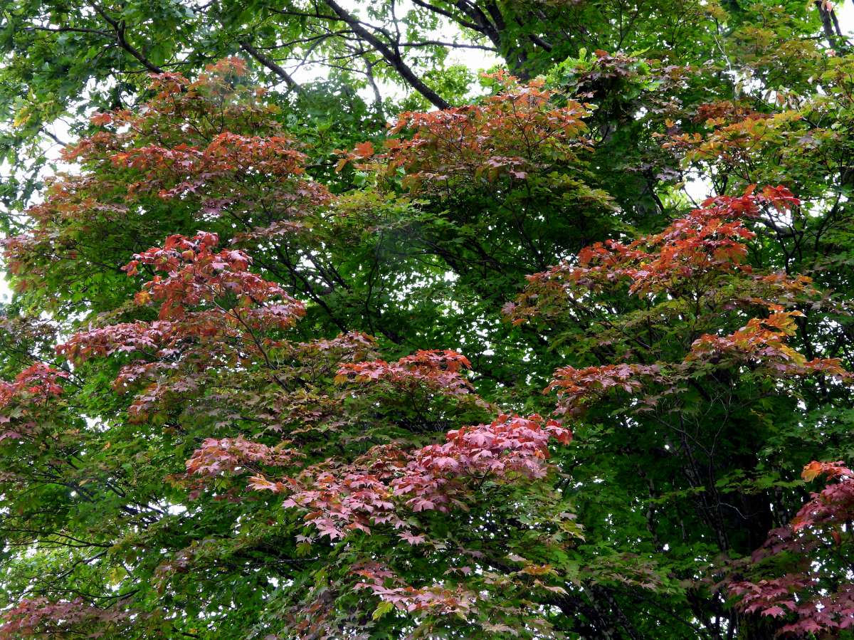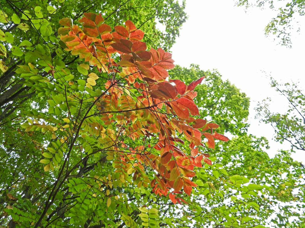 梅の香橋のそばには紅葉の樹が数本あり、まだ全体的には緑色が優勢ですが、一部分が紅葉しはじめました。(写真6)