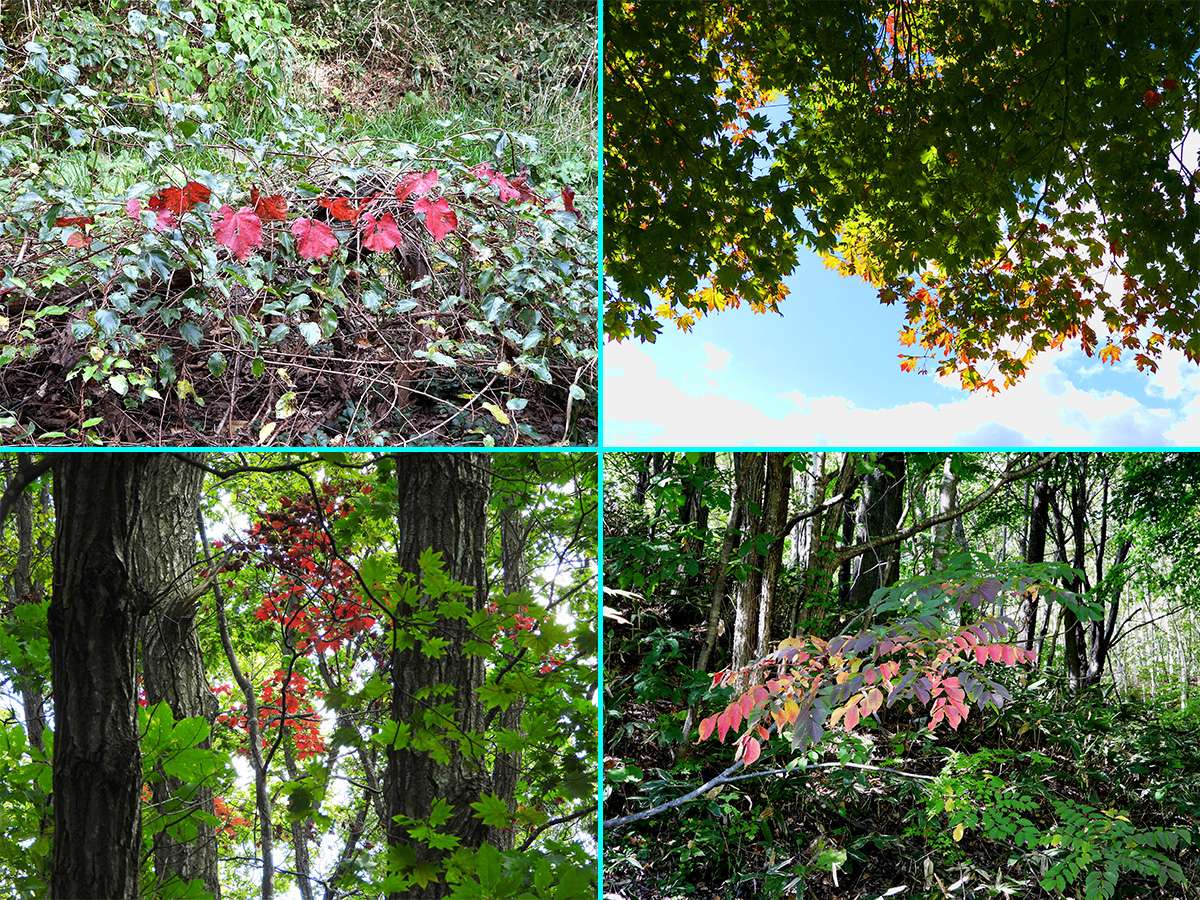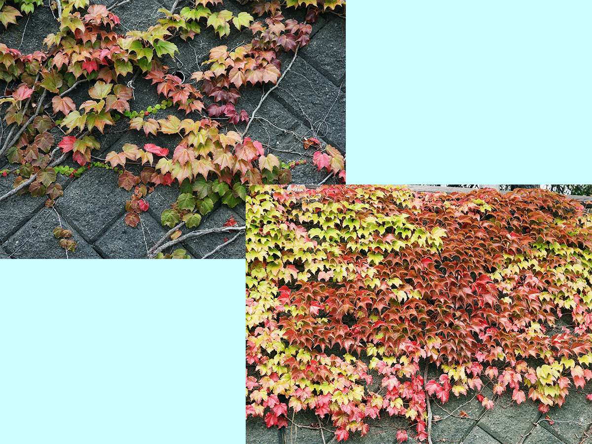 第一駐車場のツタとカエデ類は赤一色になっています。(写真4,9)