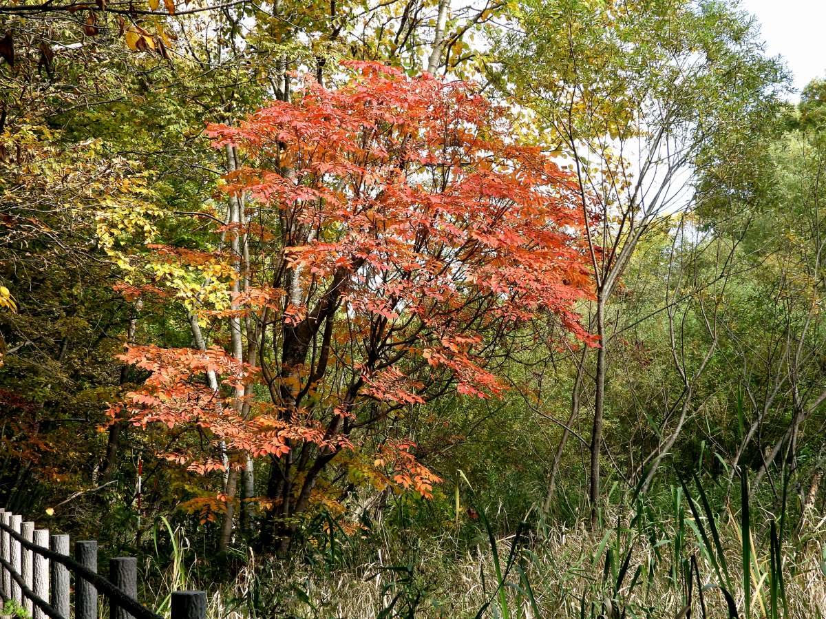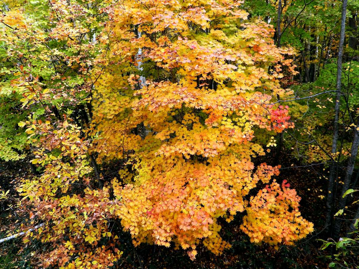 林の木々の黄葉がピークに達した観じです。(写真7)