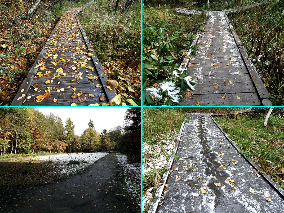 量的には少なかったのですが、夏靴を履いていたため木道がものすごく滑りやすい状態でした。(写真5:左側)