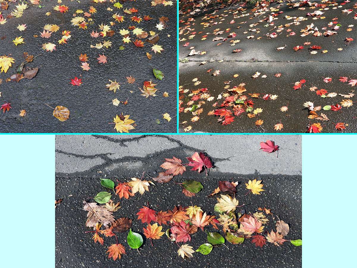 昨夜に、やや強い風が吹いた関係で、落ち葉が急に増えていました。(写真5:左上)