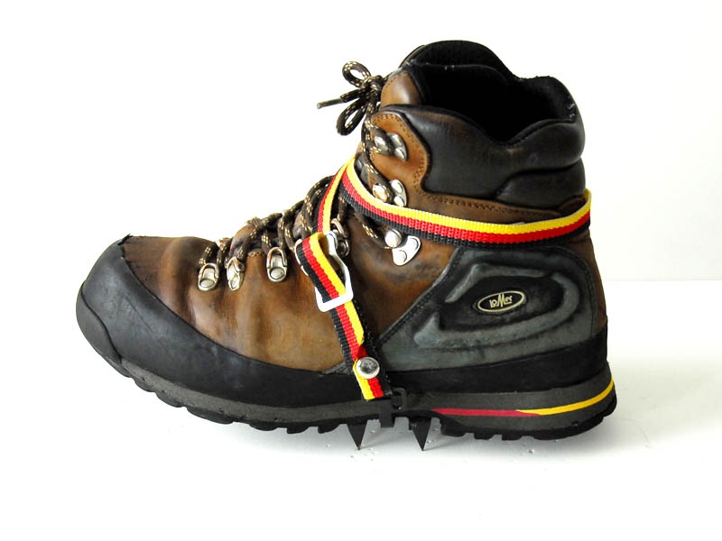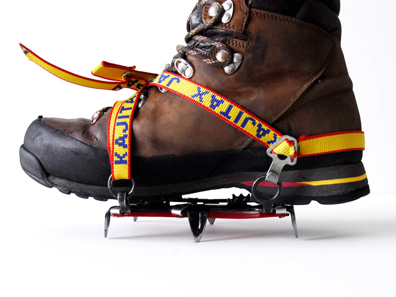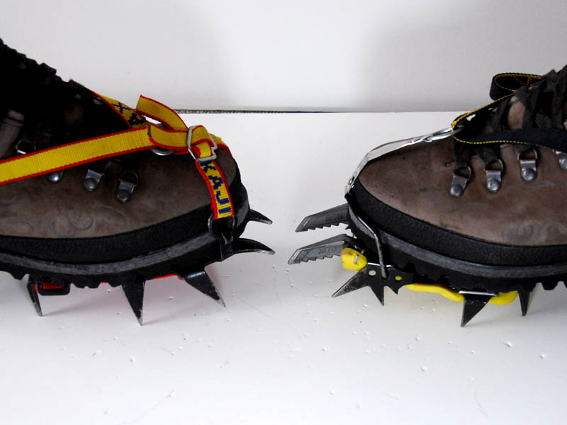 登山に行けないので、手持ちのアイゼン4種類とストック3種類の写真を連載することにしました。