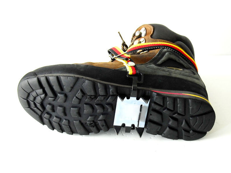 私の場合、冬季間は6本爪アイゼンを常用していますので、ツボ足登山時に必要により非常用として携帯します。