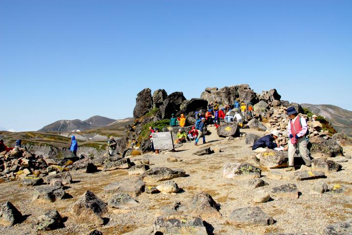 前日に寒冷前線が通過して気温が低く風も強かったので赤岳山頂で撮影後に引き返しましたが、白雲岳方面に向かった元気な人達も居ました。