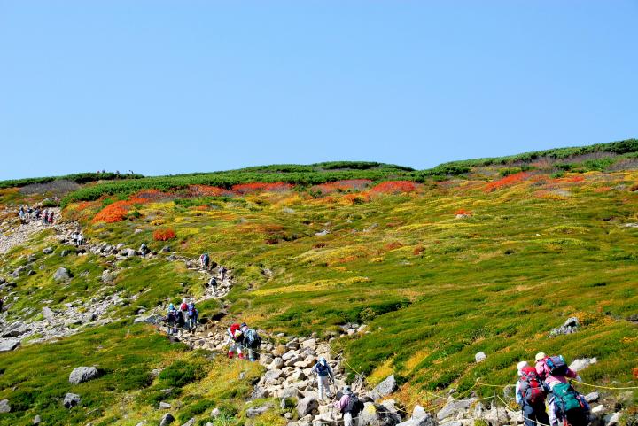 当日は晴天で、紅葉の撮影には絶好の一日でした。多数の登山者が登っていて、素晴らしい景観を堪能していました。