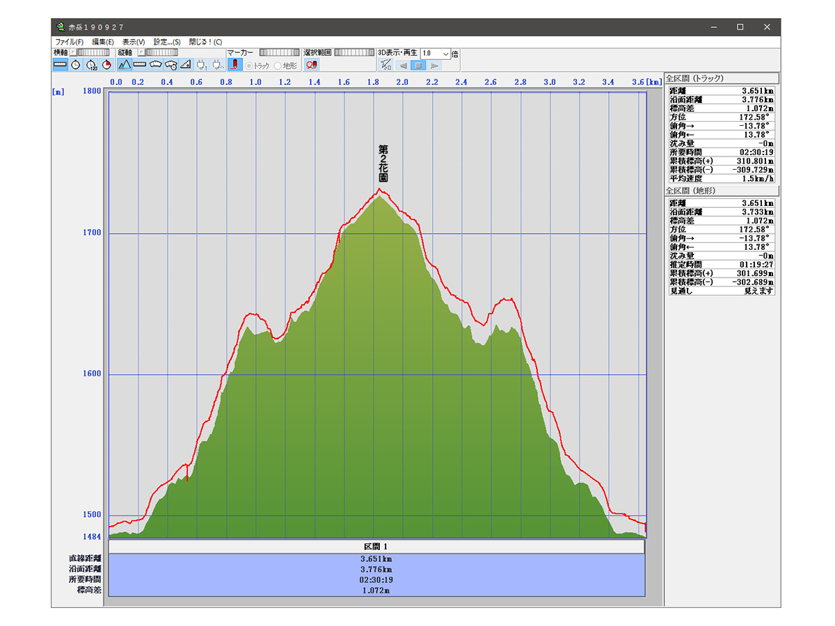 累積標高(+)地形 301m
