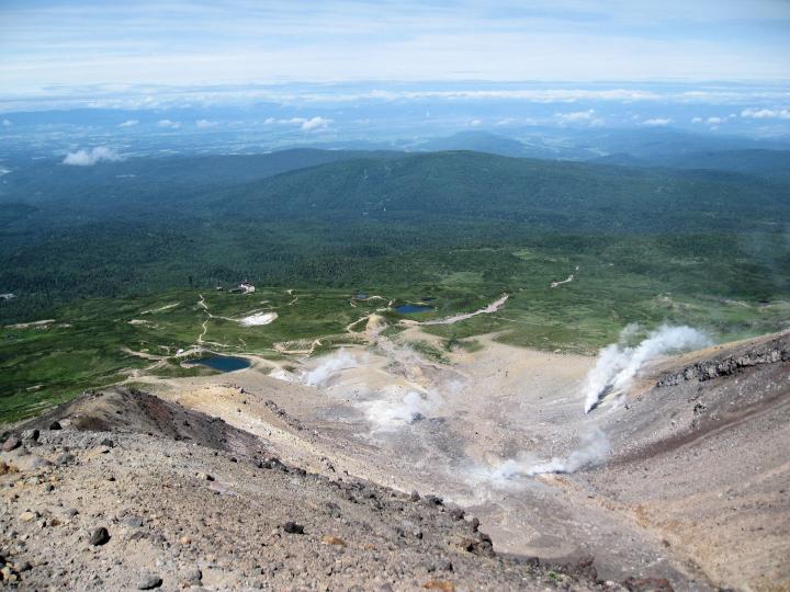 上のロープウェイ駅から見た旭岳