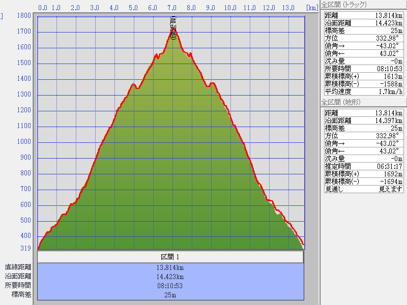 山頂着 10時26分 (1時間26分) (4時間39分)