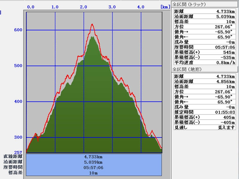 赤線は、登山の軌跡です。