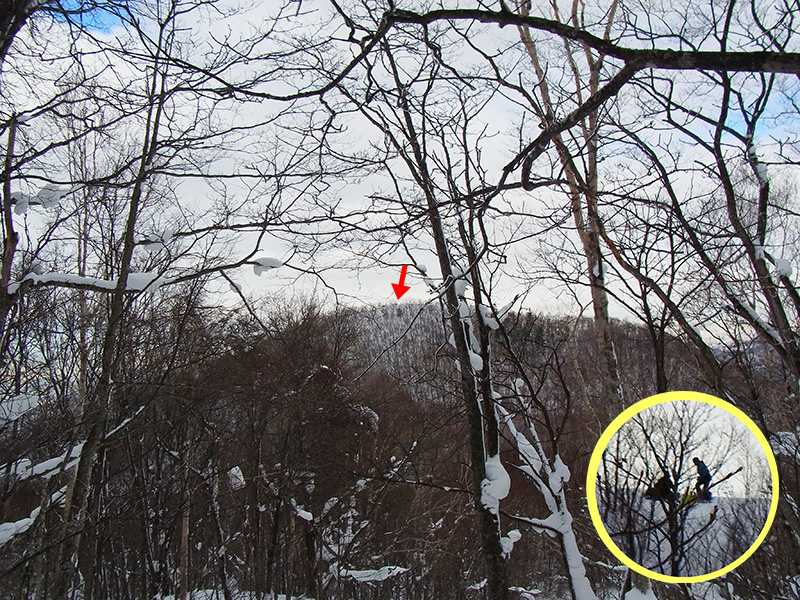 奥盤渓山からの復路で、盤渓山の山頂をみると微かに登山者の姿がみえたので、RICOH CX6カメラの最大望遠(10.7倍)で撮影してみました。