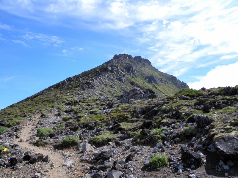 十勝岳の登りでは、厚い火山灰状のところで2歩登っても1歩分滑り落ちる様な所もあり、縦走する場合は十勝岳から美瑛岳に向かった方が楽です。