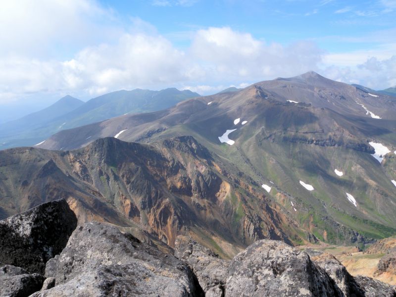 雲の発生を心配しながら山頂に到着しましたが、幸い積乱雲は発生せず十勝岳の手前でガス状の雲に入っただけでした。