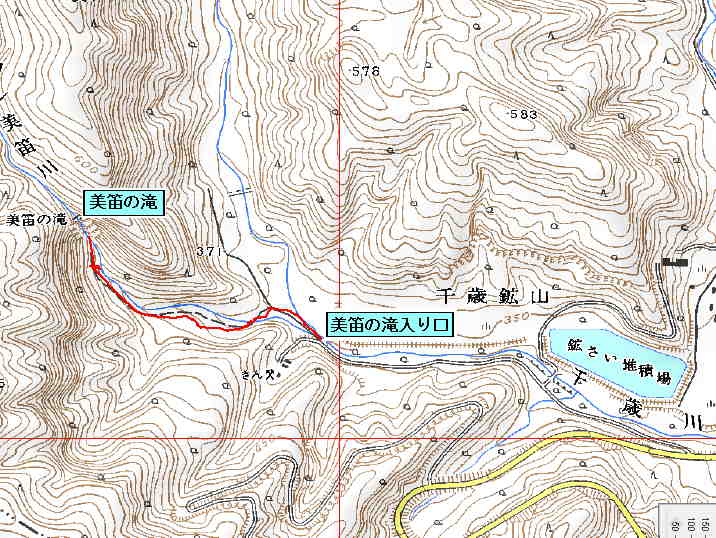 美笛の滝はやっと凍り始めたばかりで、まだポッカリ大穴があいたままで、水が勢いよく流れているのが見えます。