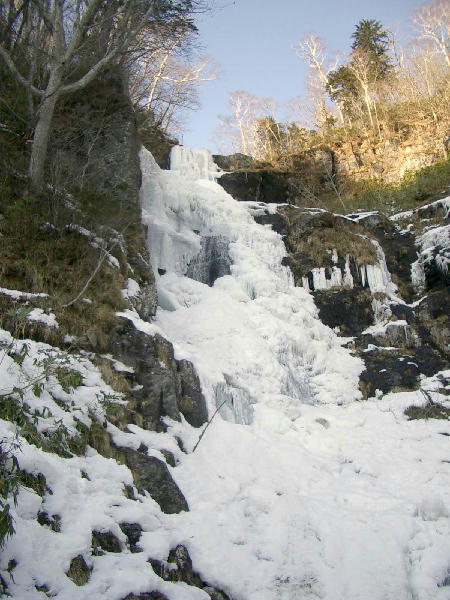 雪が少ないので滝の近くまで行くのは容易なのですが、逆に滝の氷に近づくのには苦労しました。