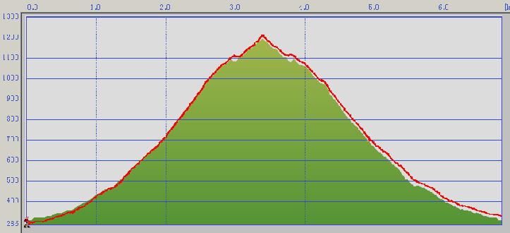 距離的に見ると藻岩山の旭山記念公園コース(往復6.4km)よりも短く、総上昇量も+300m弱である。