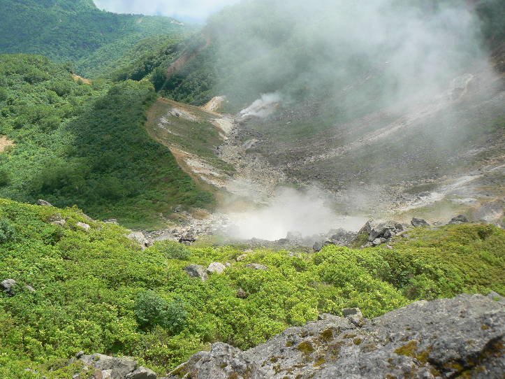 恵庭岳は活火山で、下の方では噴煙が上がっている。