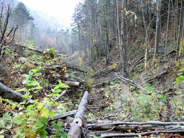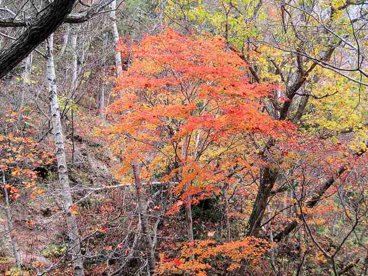 登山道の紅葉は駐車場付近で少し残っている程度で、上の方は既に終わっていました。