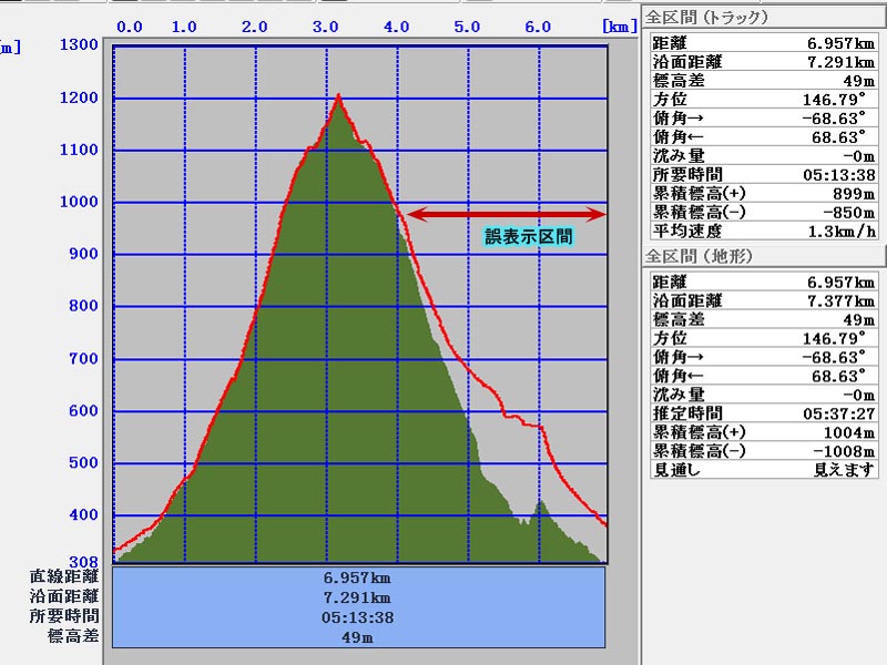 累積標高(+)地形 1004m