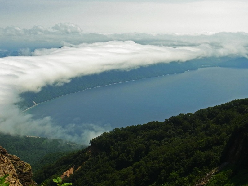 復路の途中から見た支笏湖です。