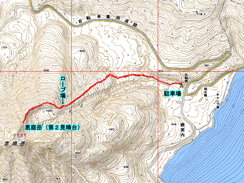 ロープ場のロープは、登り専用、下り専用とも良く整備されていました。