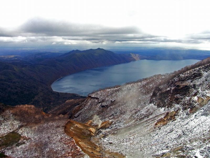 恵庭岳の登山道は火山灰と火山礫で出来ているため、何時も歩きづらいですが、今日は登山道が濡れていたのと、濡れた多数の落ち葉が登山道に落ちていたため、一段と歩きづらい状態でした。