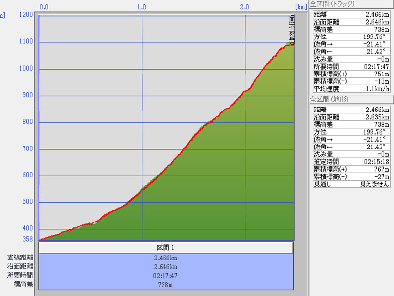 山頂着 09時35分 (0時間46分) (1時間47分)