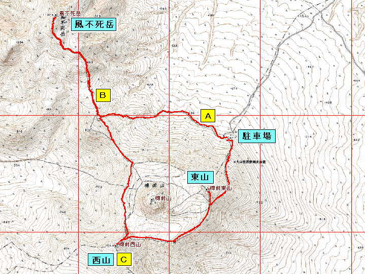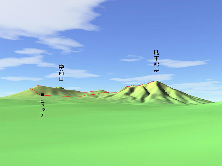風不死岳は稜線(1,000m)に到達したあと、山頂(1,103m)までは稜線上を33分(今日の実績)歩きます。