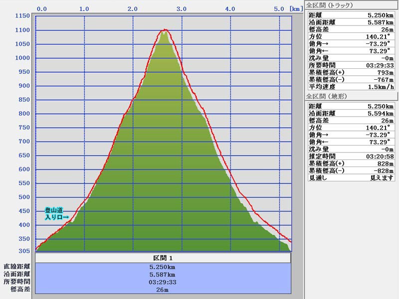 山頂着 11時07分 (1時間43分) (往路 1時間58分)
