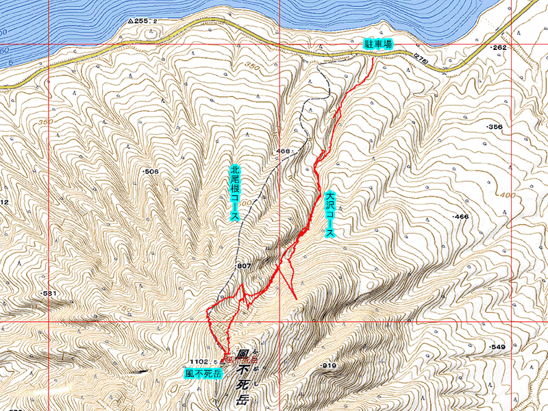 風不死岳の大沢をピッケル・アイゼンで登りました。