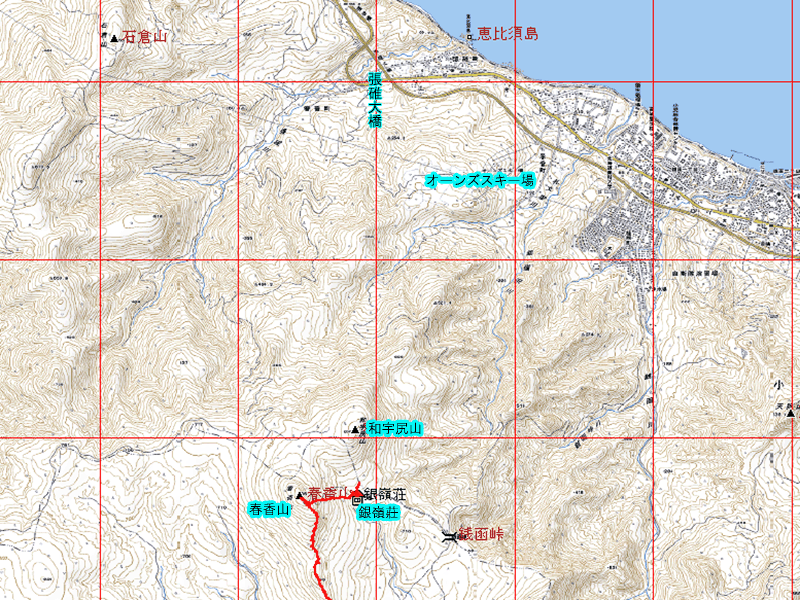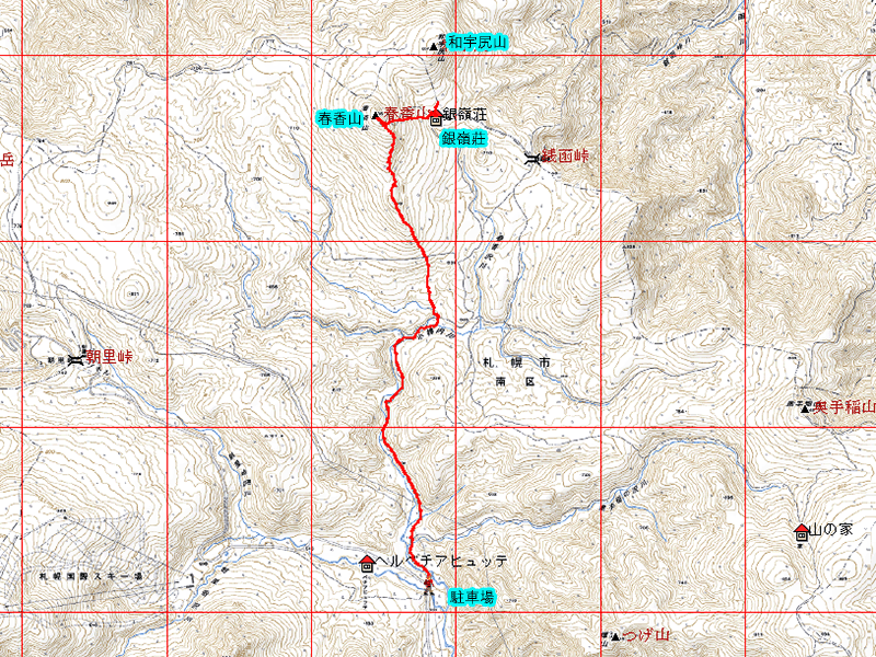 国際スキー場付近から入り、春香山山頂に登り、銀嶺莊で宿泊する。