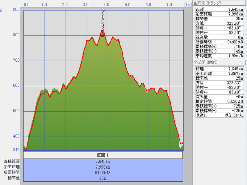 ポロピナイコースで、イチャンコッペ山の山頂を往復しました。 駐車場 07時02分 反射板 08時27分 (1時間25分) 山頂着 08時46分 (0時間19分) (1時間44分) 山頂発 09時07分 (0時間21分) (0時間21分) 駐車場 11時02分 (1時間55分) (1時間55分) 合計所要時間 4時間00分 (GPS記録) 総上昇量 m 総下降量 m 累積標高(+)トラック 770m 累積標高(+)地形 725m TP積算距離 7.9km (メモ) GPS記録: 良好