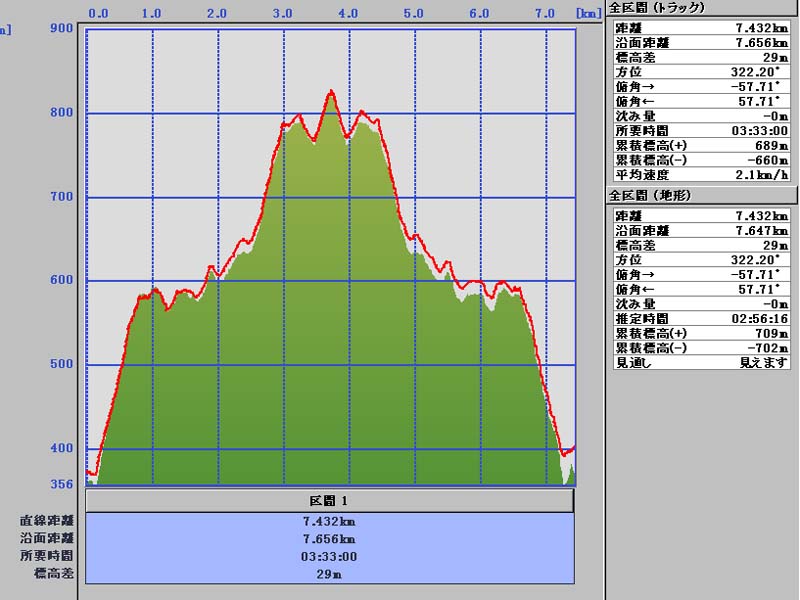 それで、写真のGPS軌跡とグラフは昨年の記録を使用しました。今年もコースは全く同じです。