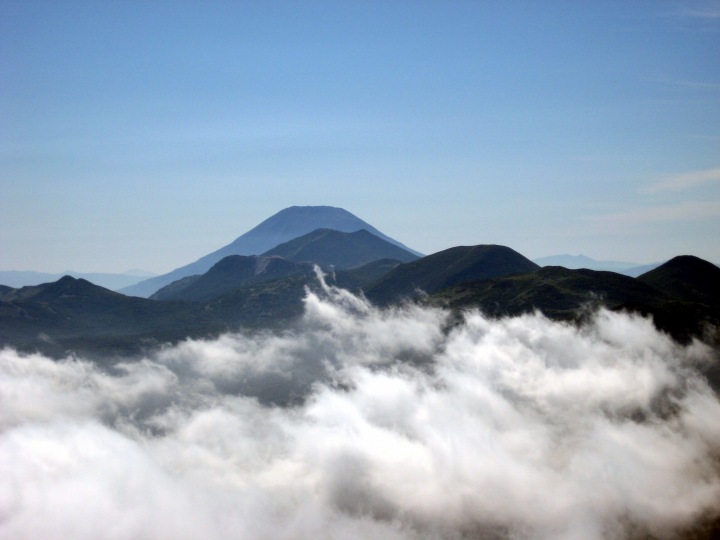 山頂では眼下に真っ白な雲がひろがり、素晴らしい景観でした。