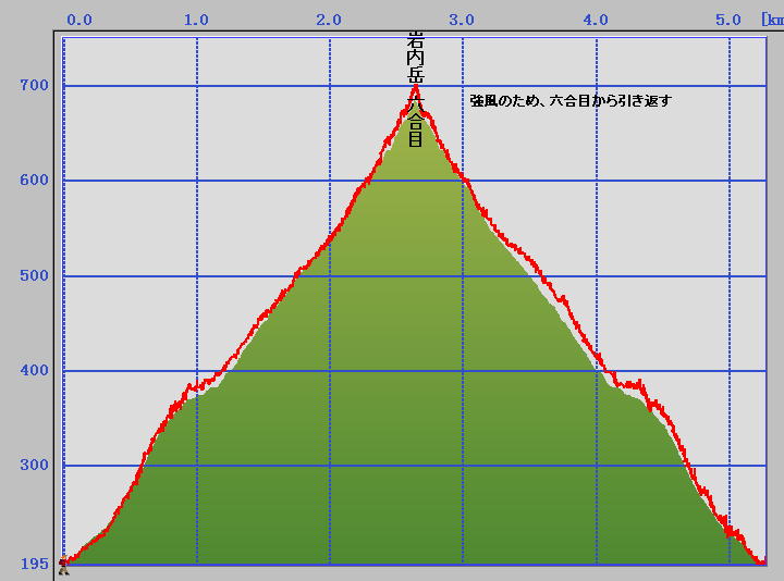 風で飛ばされて怪我をしたり、飛来した木の枝などで怪我をすることも考えられるので、安全を期してそこで登山を中止しました。