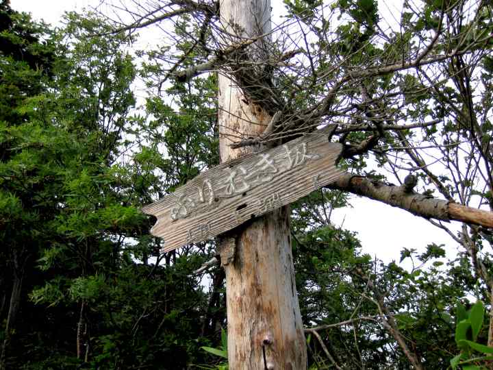 一番上にある旧リフト設備の場所が6合目にあたるそうですが、そこから少し行った「ふりむき坂」辺りで高い木が減って、見通しが少し良くなってきました。